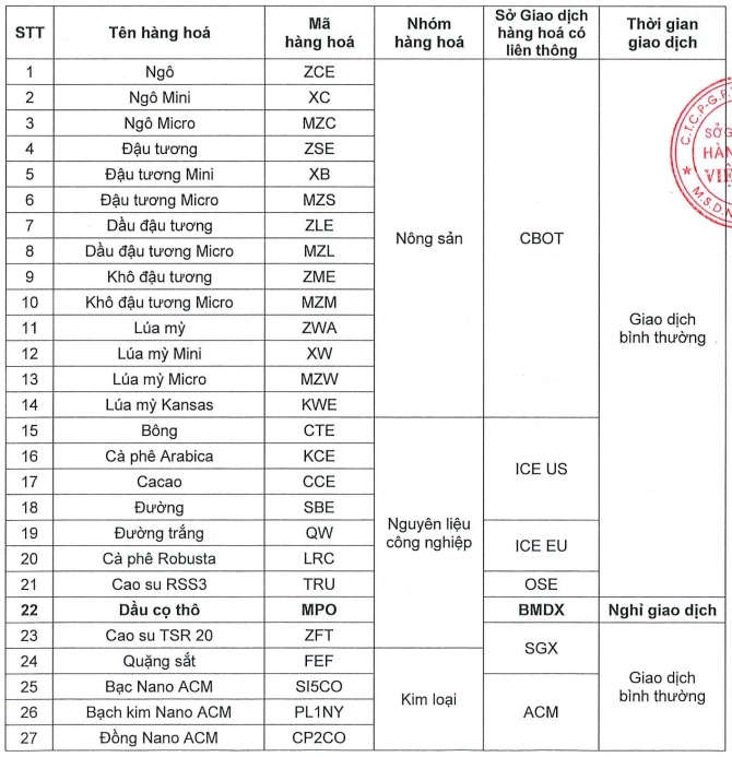 Sau thời gian nghỉ trên, việc giao dịch hàng hóa sẽ diễn ra bình thường theo khung giờ đã quy định tại MXV.